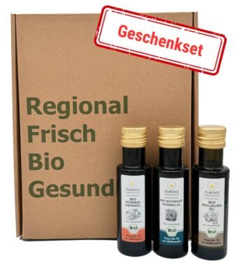 Wir bieten die Geschenkverpackung in zwei Größen für 3 x 100ml oder 2 x 250ml Flaschen.